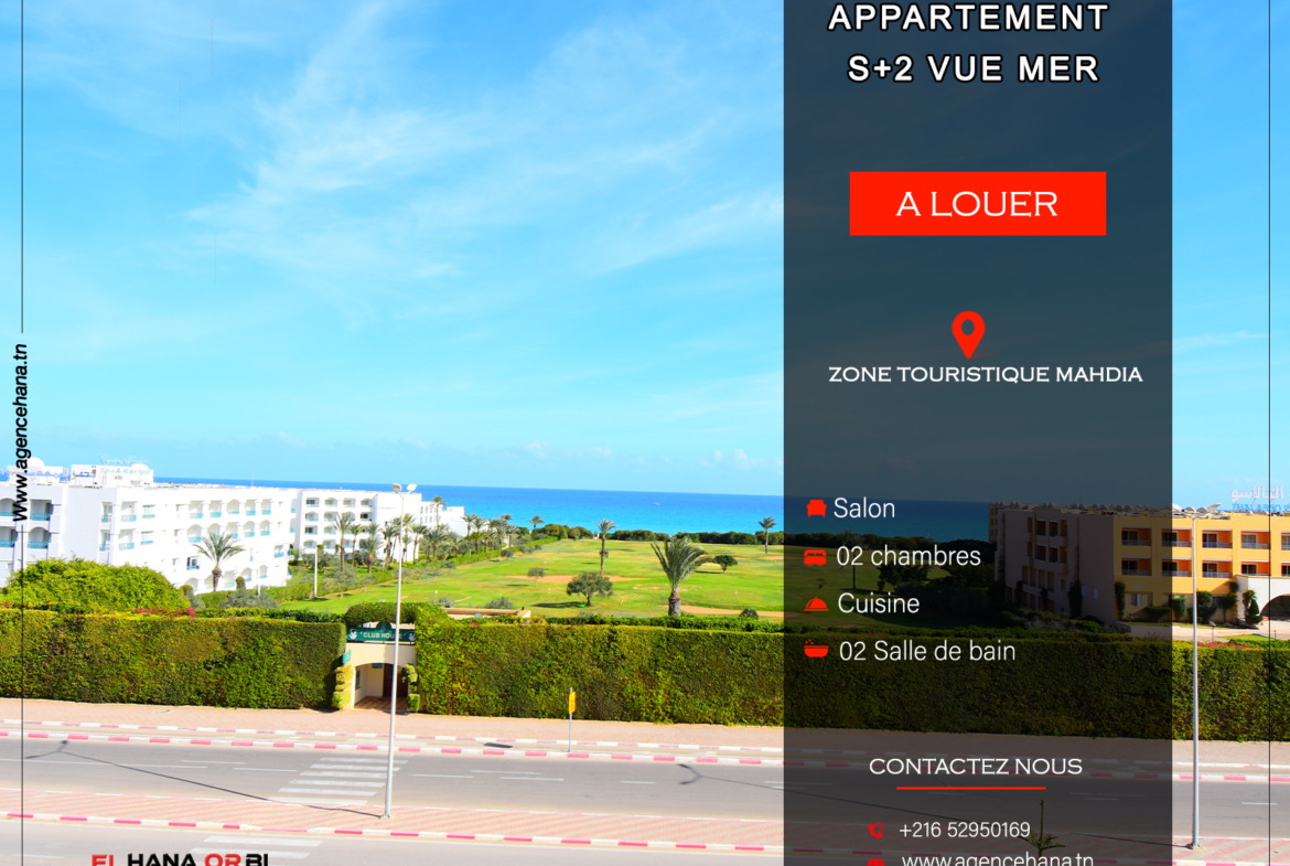 A l’année app s+2 Vue Mer En plein Zone Touristique Mahdia