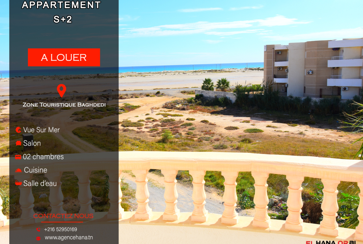 A louer Appartement s+2 Vue sur Mer à Baghdadi