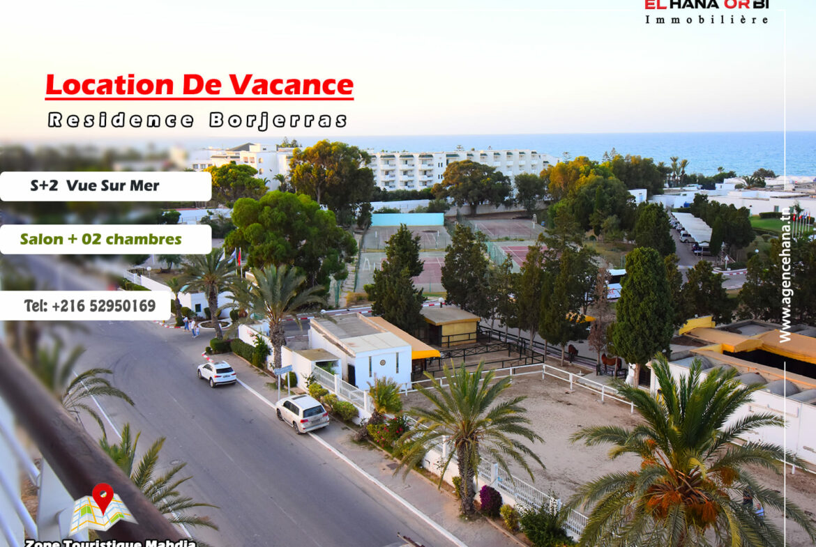 a louer appartement s+2 rz borjerras vue sur mer et pied dans l’eau à mahdia