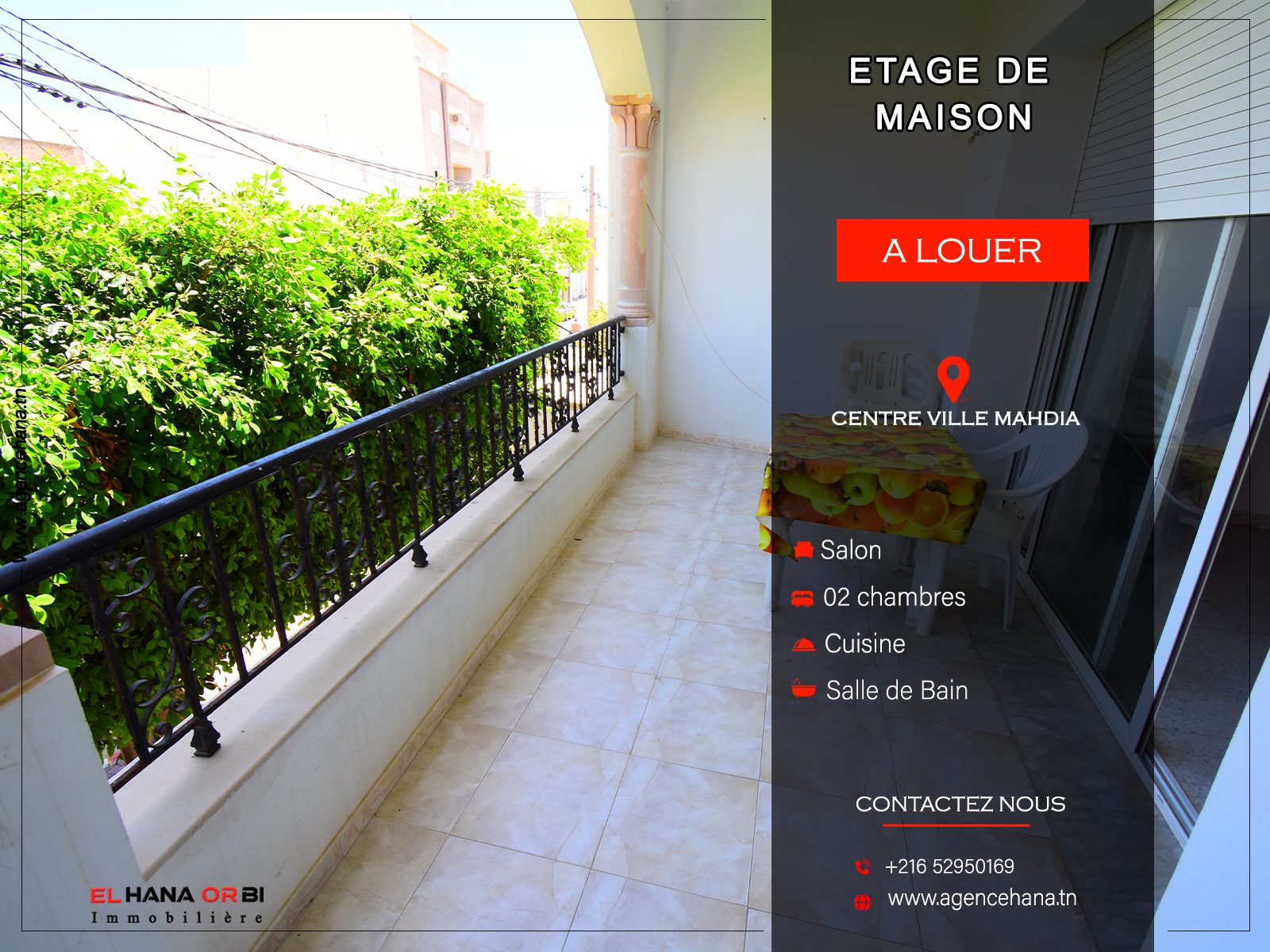 𝐿’𝑎𝑔𝑒𝑛𝑐𝑒 𝐄𝐋 𝐇𝐀𝐍𝐀 𝐎𝐑𝐁𝐈 𝑣𝑜𝑢𝑠 𝑝𝑟𝑜𝑝𝑜𝑠𝑒 𝐮𝐧 𝐞́𝐭𝐚𝐠𝐞 𝒅𝒆 𝒎𝒂𝒊𝒔𝒐𝒏 𝐬𝐩𝐚𝐜𝐢𝐞𝐮𝐱, 𝑠𝑖𝑡𝑢𝑒́ 𝑎𝑢 𝟏𝐞𝐫 𝐞́𝐭𝐚𝐠𝐞, 𝑑𝑎𝑛𝑠 𝑙𝑒 𝑞𝑢𝑎𝑟𝑡𝑖𝑒𝑟 𝑟𝑒́𝑠𝑖𝑑𝑒𝑛𝑡𝑖𝑒𝑙 𝑒𝑡 𝑐𝑎𝑙𝑚𝑒 𝑑𝑒 𝐇𝐢𝐛𝐨𝐮𝐧𝐞 𝐚̀ 𝐌𝐚𝐡𝐝𝐢𝐚..