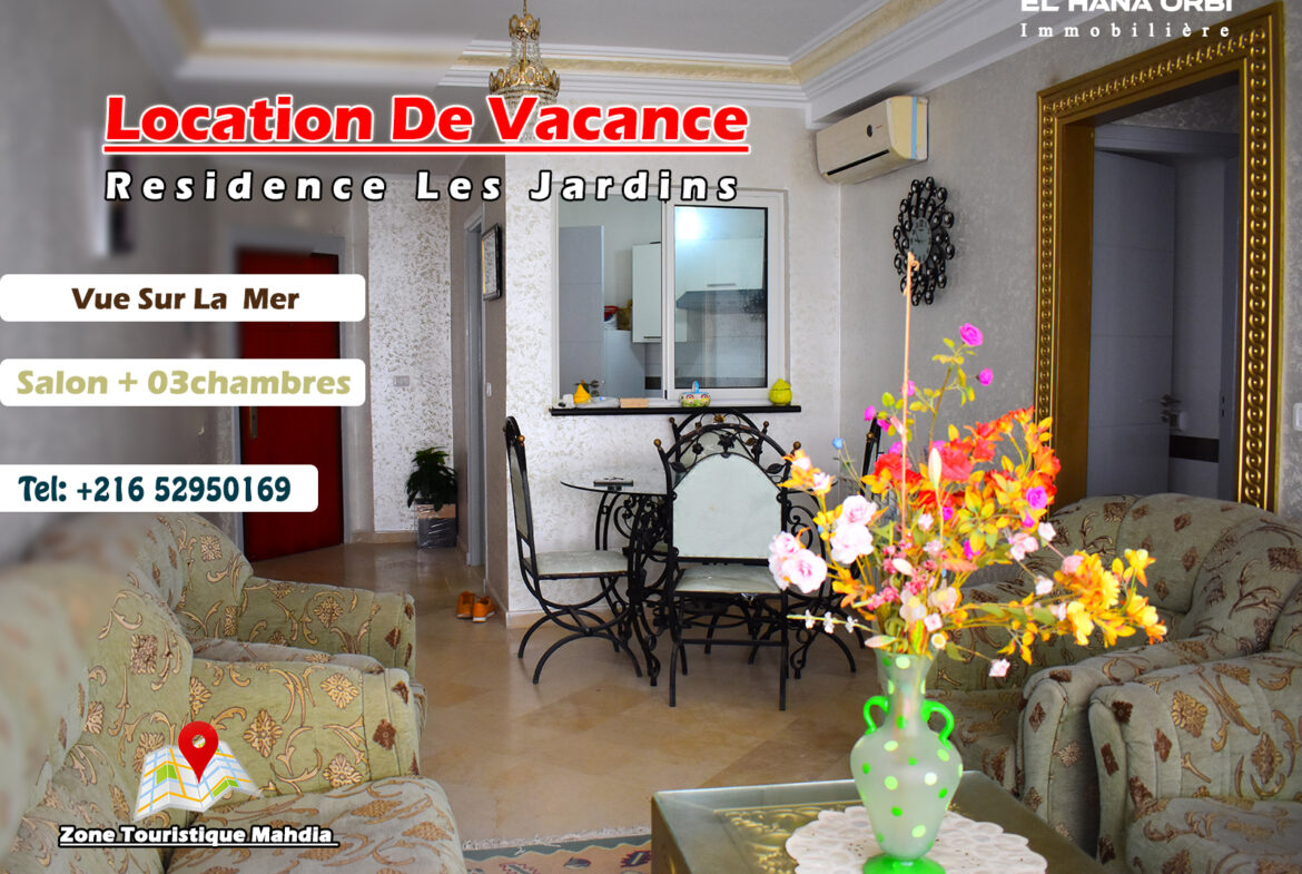 a louer s+3 rz les jardins en face hotel mahdia beach zone touristique