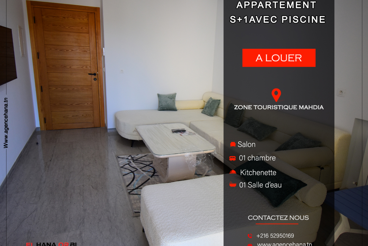 appartement s+1 avec piscine a louer en plein zone touristique Mahdia à l’année