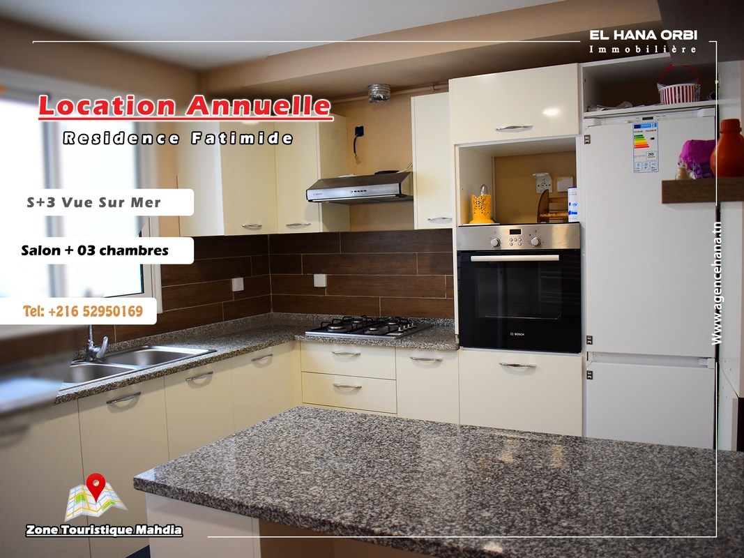 location annuelle appartement s+3 en plein zone touristique mahdia