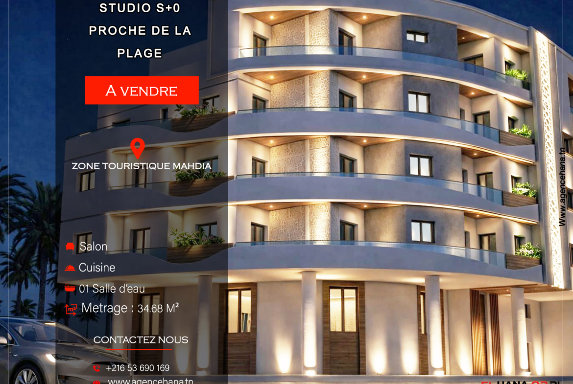 nouveau projet sur plan à vendre appartement s+0 à Mahdia corniche